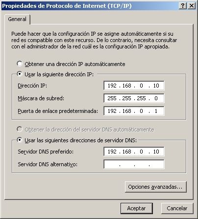 · Dirección IP del servidor: 192.168.0.10