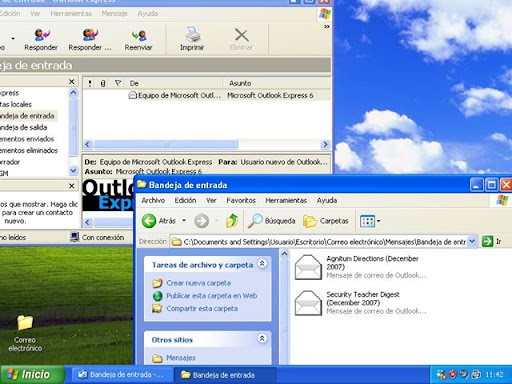 Ahora abrimos la carpeta Correo electrónico y situamos ambas ventanas, Outlook Express y Correo electrónico, de tal forma que se puedan arrastrar los mensajes de una ventana a otra...