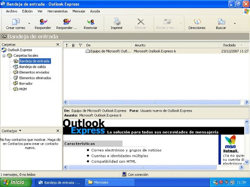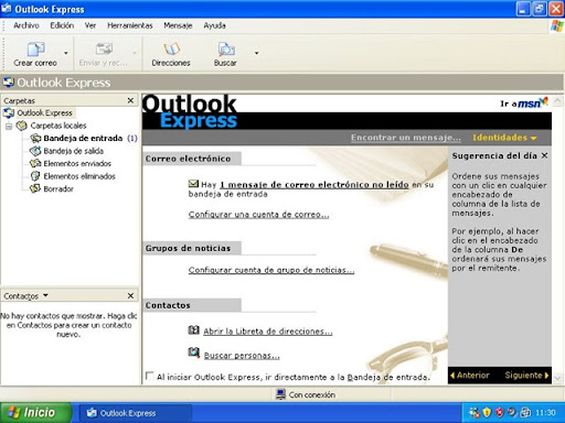 Cuando finalicemos el asistente, nos quedaremos en la ventana principal de Outlook Express.