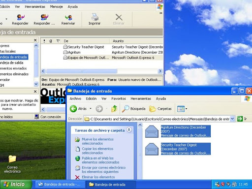 Ahora abrimos la carpeta Correo electrónico y situamos ambas ventanas, Outlook Express y Correo electrónico, de tal forma que se puedan arrastrar los mensajes de una ventana a otra...