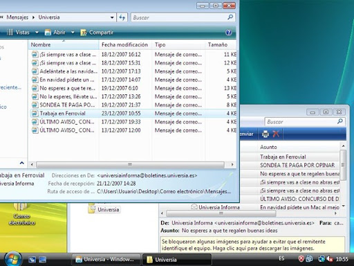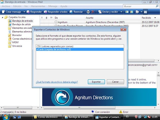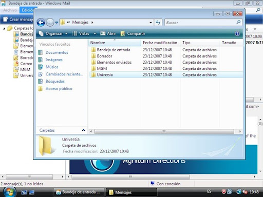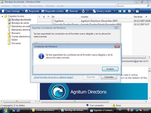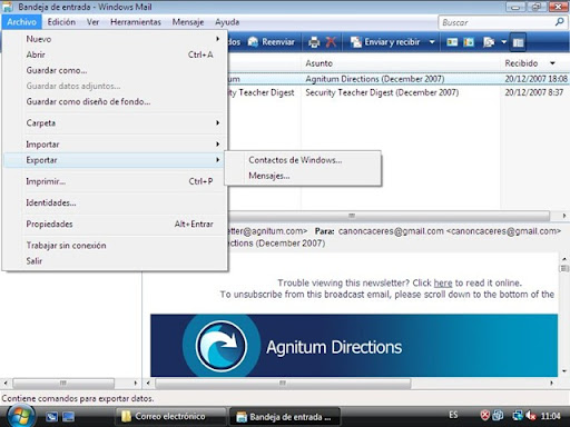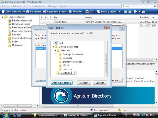 Bueno, ahora llega el momento de exportar los mensajes de Windows Mail a las carpetas que acabamos de crear.