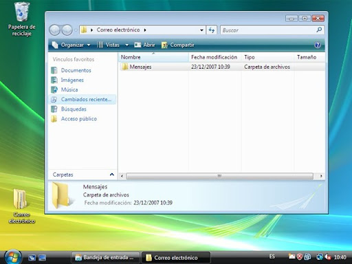 Empezamos por crearnos una carpeta, por ejemplo, en el Escritorio de Windows con el nombre Correo electrónico y dentro de esta una subcarpeta llamada Mensajes.