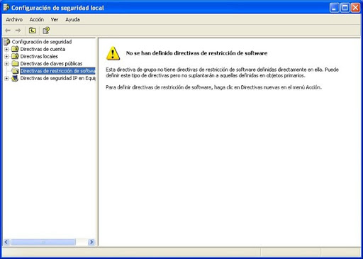 Hacemos clic en Directivas de restricción de software en el la parte de la izquierda de la ventana.