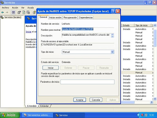 3. Buscamos la línea que ponga: Ayuda de NetBIOS sobre TCP/IP y damos doble clic sobre ella. Nos aparecerá la siguiente ventana: