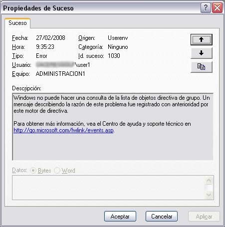 Si no consigues resolver la aparición de estos sucesos, siempre puedes echar un vistazo a las páginas http://www.eventid.net/display.asp?eventid=1058&source=Userenv y http://www.eventid.net/display.asp?eventid=1030&source=Userenv para tomar otras ideas.